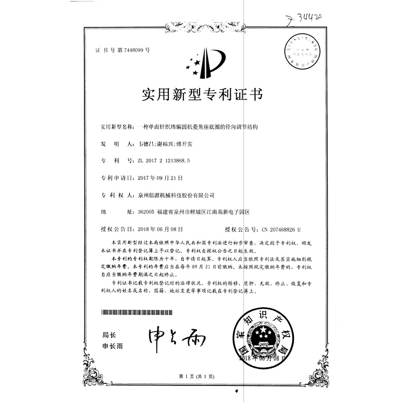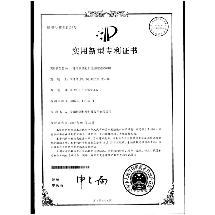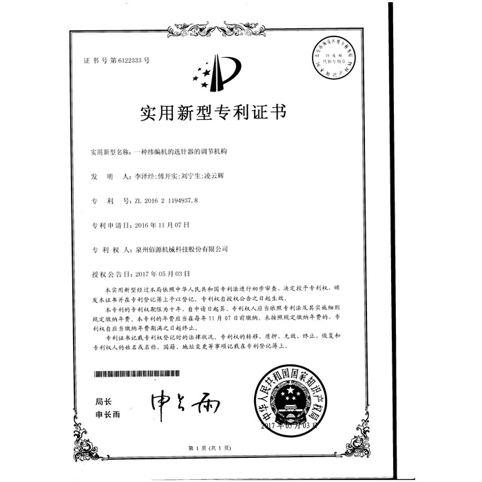 新型專利-一種圓編機(jī)的提花片