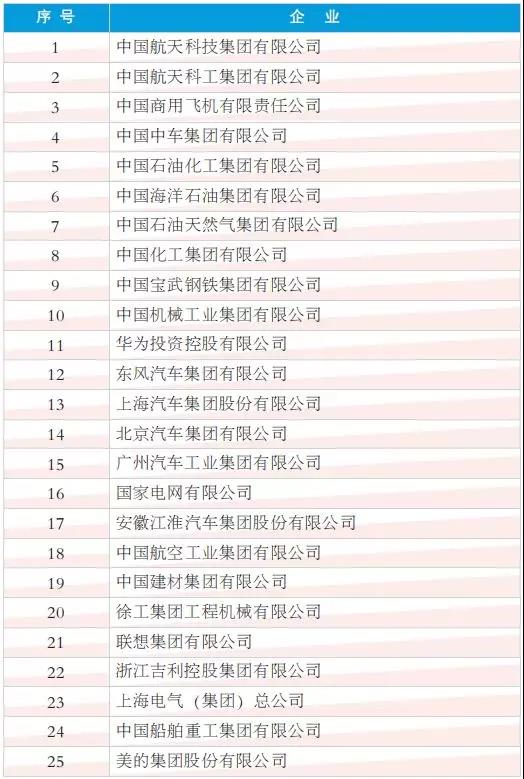 2018年度中國工業(yè)影響力企業(yè)(排名不分先后)